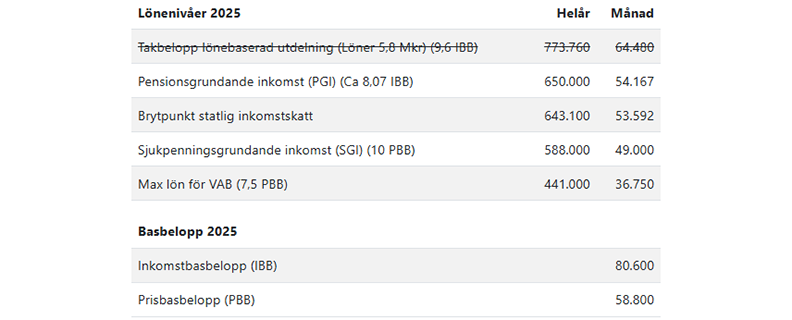 Det finns ett antal lönenivåer man vill/kan/bör komma upp till för att täcka det sociala skyddsnätet. För ägare till aktiebolag med fåmansregler bör man även ta med utdelningsreglerna i lönestrategin för att kunna minimera skatten och maximera pengar i plånboken.